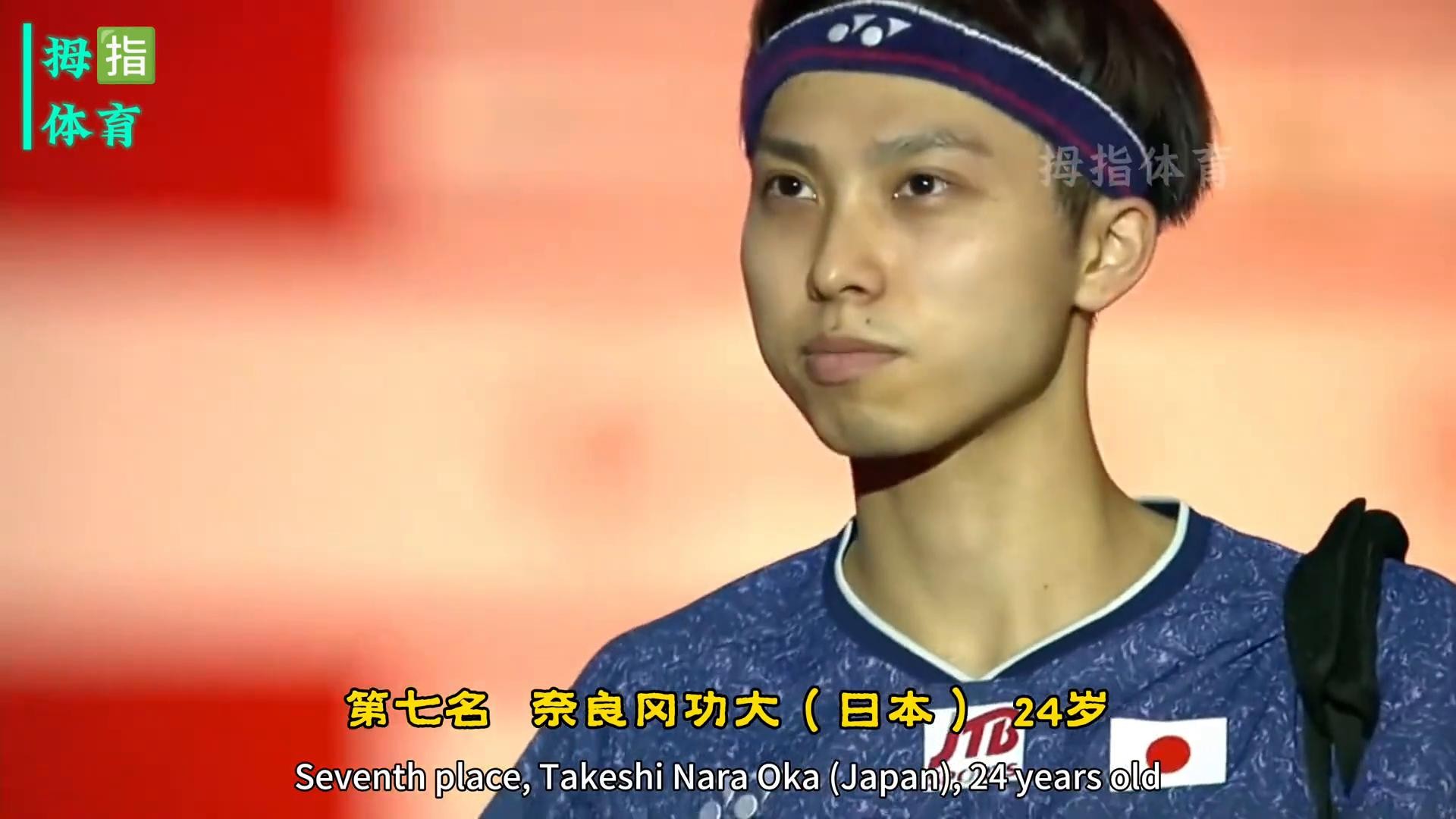 ·第七名:奈良冈功大(日本)24岁,世界羽联积分73204分。其打法依赖体能和防守,进攻杀伤力不足,但24岁的年龄仍被视为上升期,若无法在高级别赛事中取得突破,可能影响其冲击世界顶尖排名的步伐。