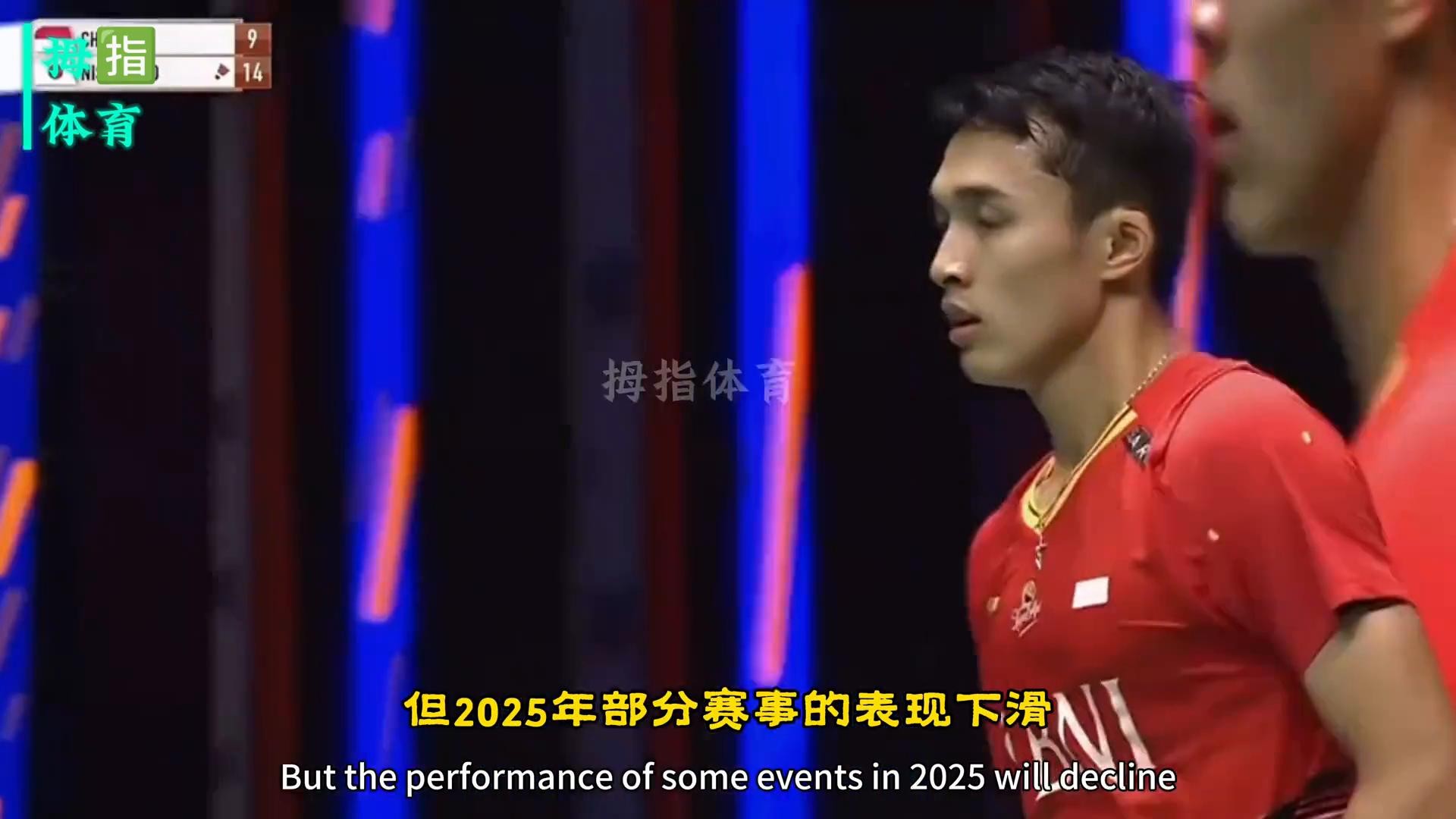 ·第四名:乔纳坦(印尼)28岁,世界羽联积分80614分。作为印尼羽毛球男单的核心选手,尽管积分和排名仍居前列,但2025年部分赛事的表现下滑显示其面临年龄增长。与新生代选手冲击的双重挑战。