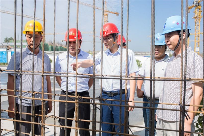 赵小龙(中)检查隆城紫竹苑项目钢筋绑扎情况