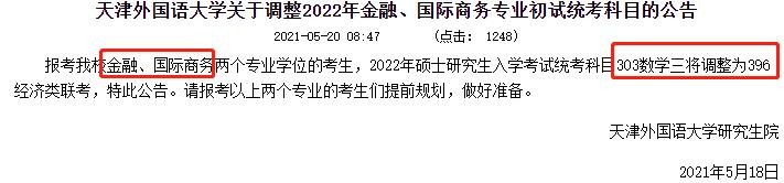 0251金融、0254国际商务:303数学三调整为396经济类联考综合能力