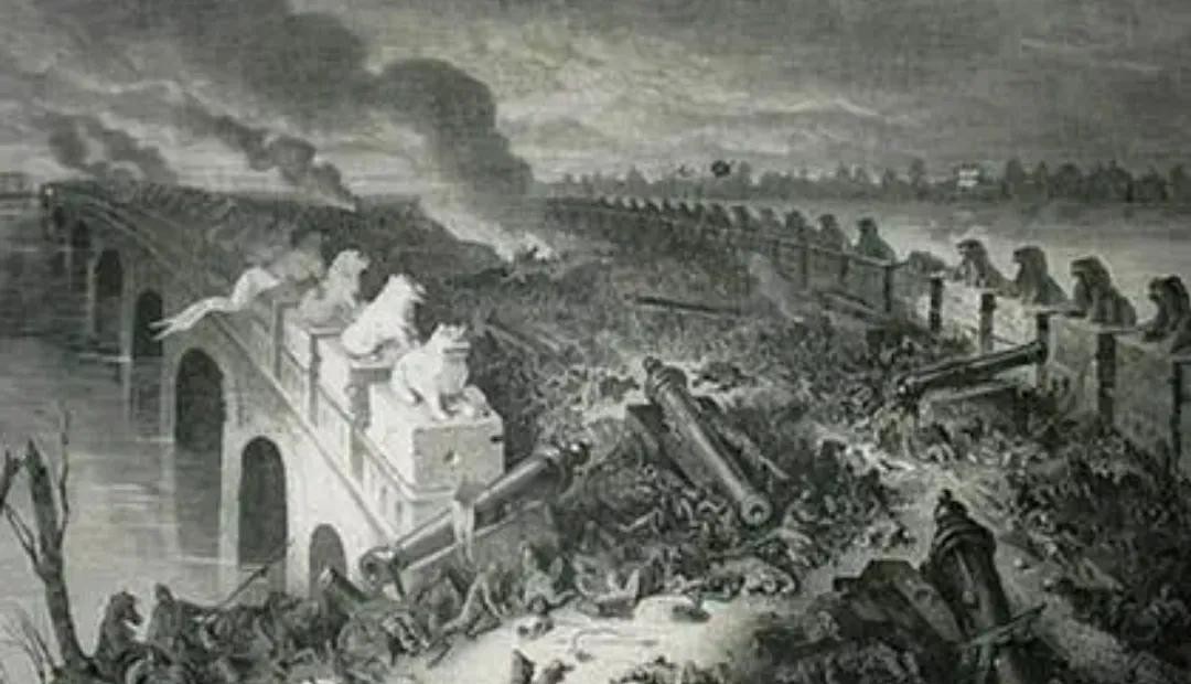 1858年到1860年为第二次鸦片战争的第二阶段。1859 年,英、法公使来华换约,因拒绝按照清政府指点的地点与路线换约,战事再起。在中国守军痛击下,英、法侵略军惨败。1860 年春夏,英、法侵略军再度来华,发动扩大了的侵华战争。于8月攻陷大沽,占领天津,进犯北京。10 月初,侵略军占领圆明园,在大肆抢掠后,纵火焚毁。随后,英法联军占领安定门,控制了北京城。10 月24 日、25 日分别签订了中英、中法《北京条约》。