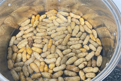 1、将花生表面的泥土和脏东西清洗干净,放入锅中,倒入足量清水,水量要没过花生,然后往水中加入1勺食盐、3个八角,稍微搅动下;