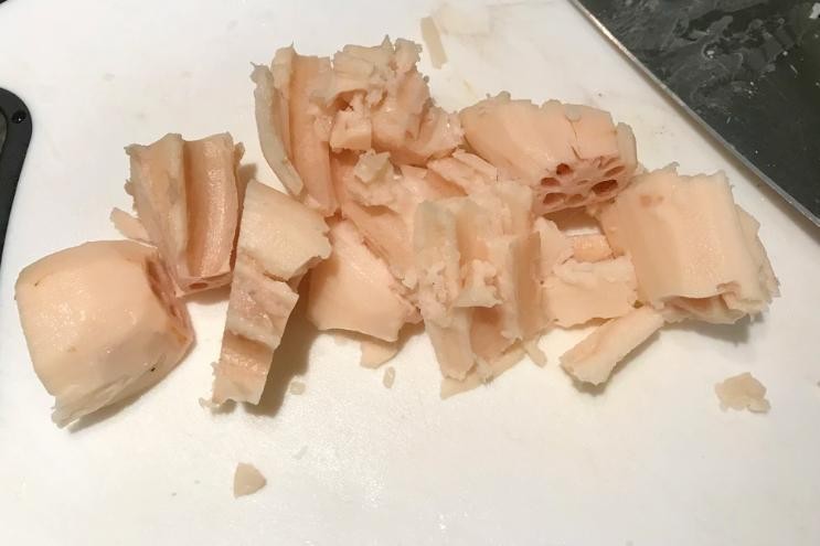食材准备:莲藕1节、猪骨300克、小葱1根、料酒1勺、食盐适量