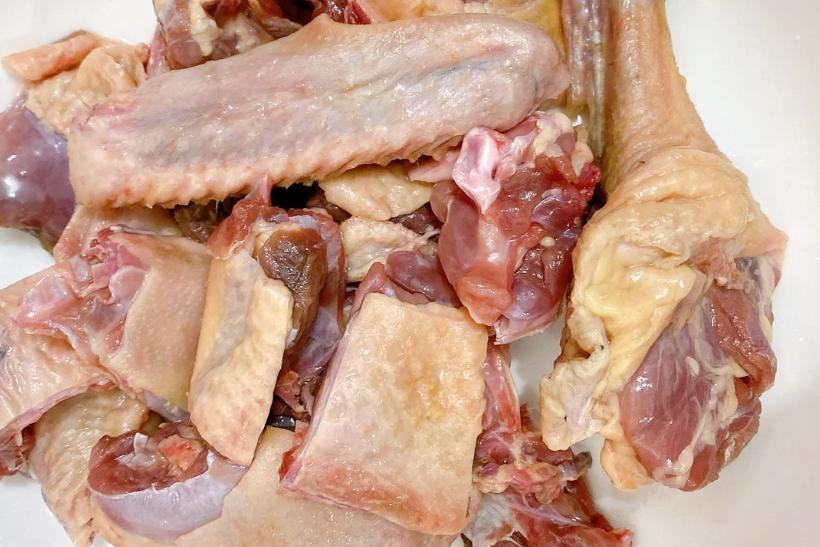 食材准备:鸭子半只、芋头300克、料酒1勺、大蒜3瓣、生姜1小块、生抽2勺、蚝油1勺、老抽半勺、白糖半小勺、