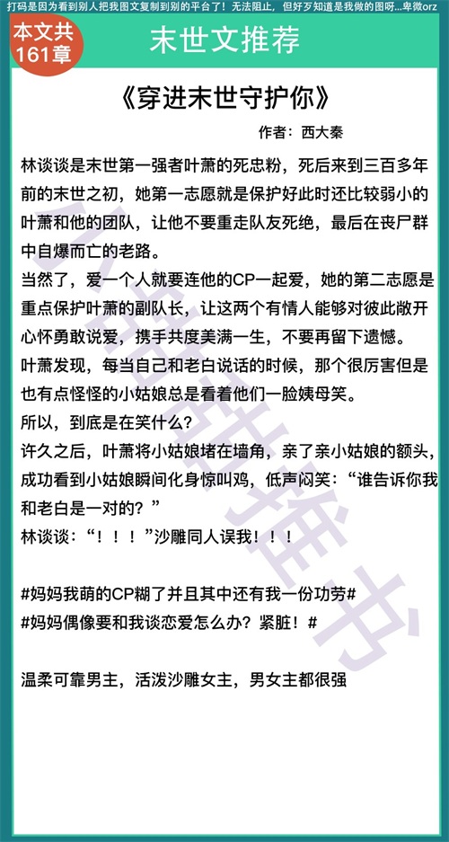第四本《穿进末世守护你》作者:西大秦