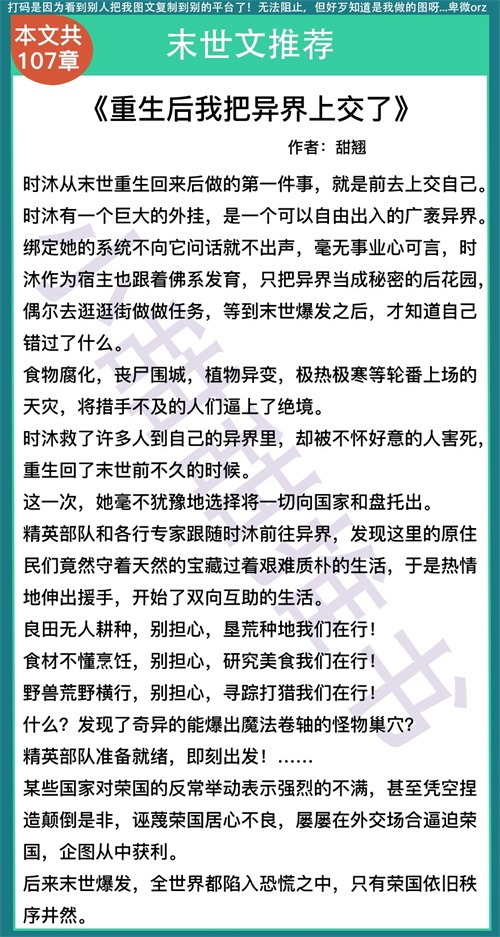第七本《重生后我把异界上交了》作者:甜翘