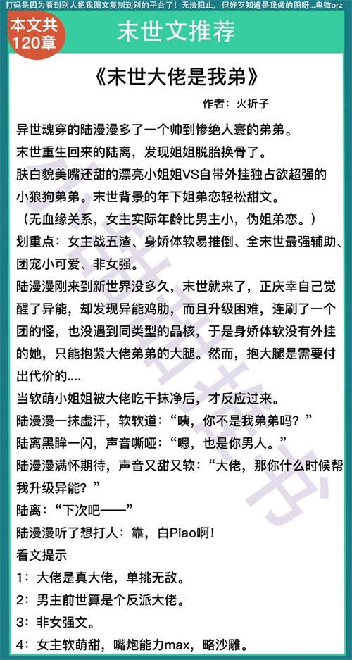 第三本《末世大佬是我弟》作者:火折子