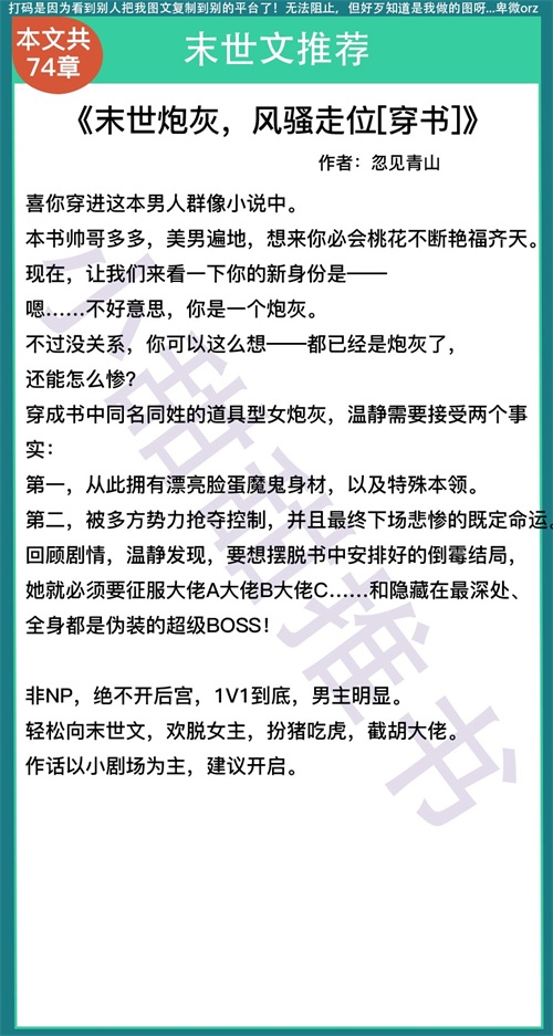 第二本《末世炮灰,风骚走位[穿书]》作者:忽见青山