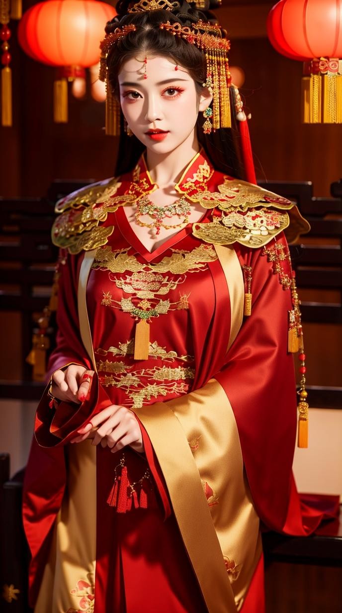 大红嫁衣是中国传统婚礼的象征,象征着幸福、吉祥和喜庆。在古代,新娘子穿着嫁衣,被视为最美丽的女人,也代表了家族的荣誉和传承。大红嫁衣的设计非常考究,一般都会采用刺绣、绣花、金线、珠片等丰富的装饰元素,以突出新娘子的华丽和尊贵。