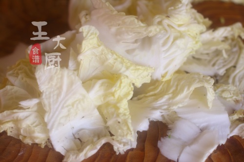 1、将准备好的白菜手撕成块,简单冲洗,留以备用。