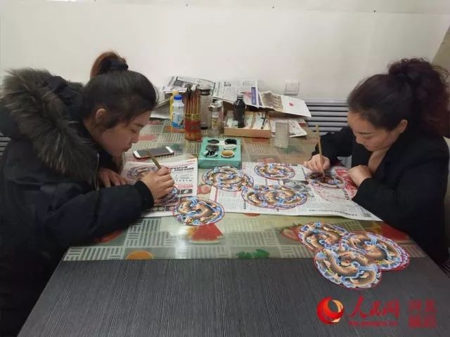 图为蔚县剪纸匠人正在为剪纸上色。王红 摄