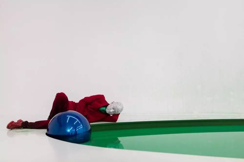 连续七天,“异教徒”几乎没有任何面目特征地出现在展厅里,用他的身体构成作品。他每天多次重复自己的动作,让它们更倾向于仪式化。在刘成瑞看来,行为艺术和表演不同,它不应该让看不懂的人觉得是一种杂耍。在这一点上,它更接近宗教,抽离了多余的情绪,身体才能变得客观。