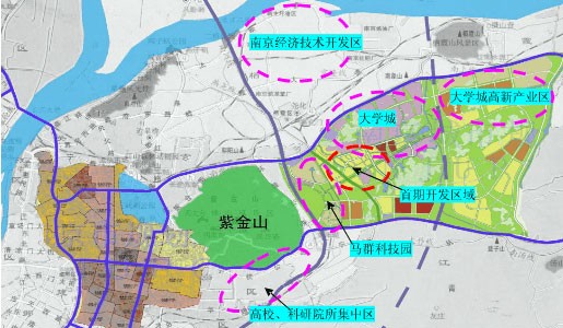 白象片区:仙林大学城的远期发展地区。引进国际知名工科大学和著名科研机构,以“产,学,研”同步发展为特色,力争形成南京市重要的高新技术产业园。