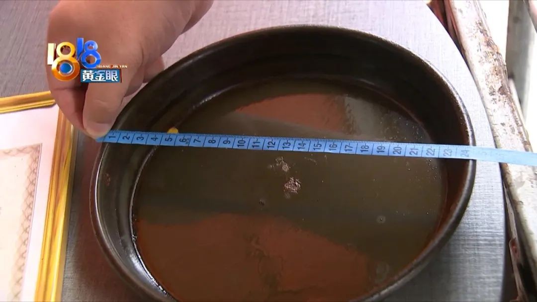 张先生:“直径21厘米。(横过来量。)横过来量的话大概是20.3厘米左右。(比你那天的?)大得有点多,差了得有3厘米。”