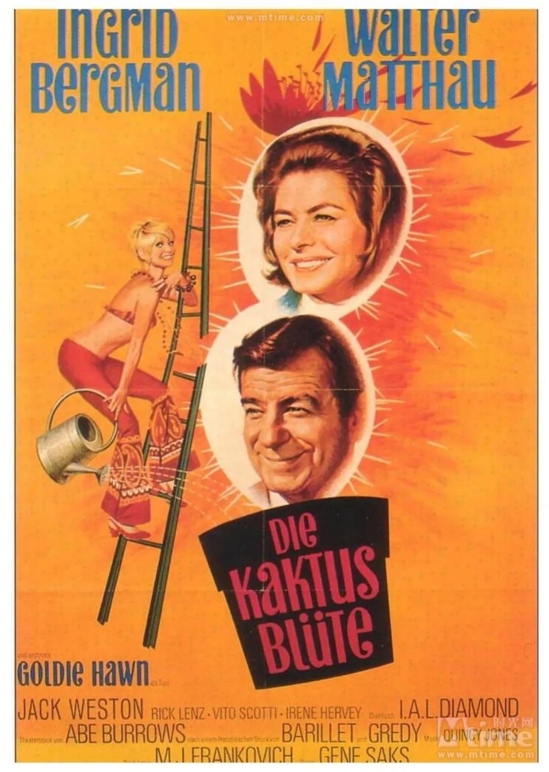 12《仙人掌花》吉尼.萨克斯执导的喜剧片。沃尔特.马修与英格丽.褒曼,歌蒂.韩等联合主演。英格丽.褒曼凭借该片获得第70届美国金球奖音乐喜剧类最佳女主角提名。