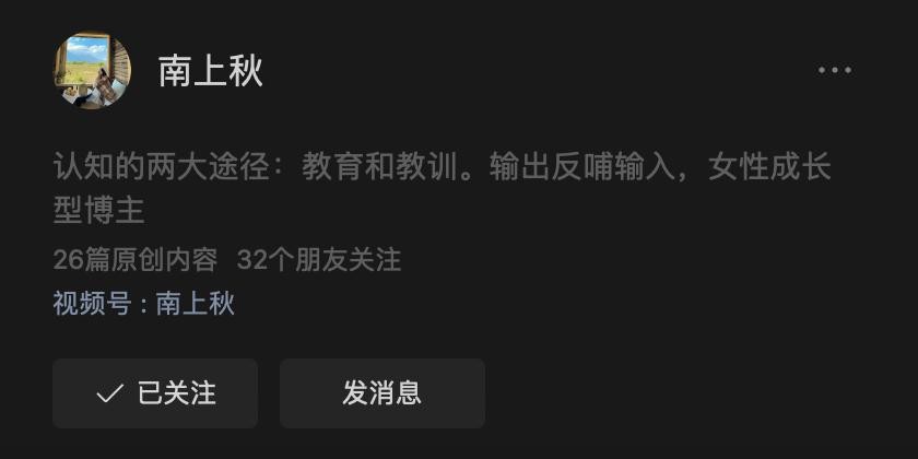 我是南上秋,女性成长博主。随笔杂谈,用输出反哺输入,欢迎关注我的公众号【南上秋】