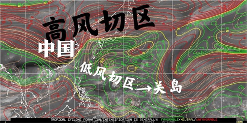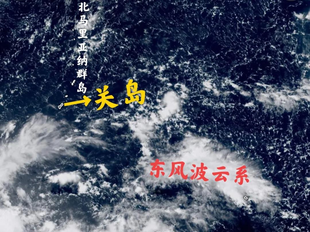 目前,预报中的大型台风的前身系统,正在关岛东南方向活动,目前性质上属于一个发展初期的东风波,还不算一个成熟的台风胚胎——