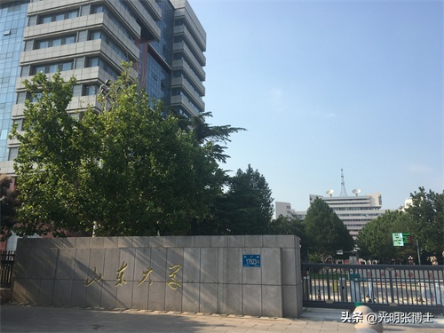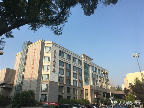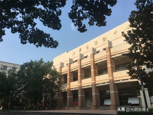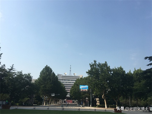 校园门口西边的高大标志性建筑为创新大厦,这是在原教学七楼的位置重建的。