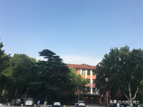 下面是在东花园东侧,校园最早的建筑,绿树掩映下的教学一楼,已经过加固改造。