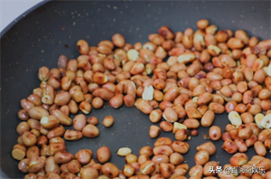5、起锅烧热,放入花生小火慢炒,直至听到啪啪生,说明炒熟了,关火,放凉。