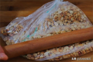 8、接着就用擀面杖或者啤酒瓶都可以,将其碾碎。