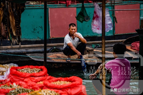 清清的贡江水川流不息的奔向远方在龟角尾处与章江汇合成赣江,赣州古浮桥生活着许多的渔民,售卖自己的各类鱼货。这样延续的存在也为赣州古浮桥增添了活力。