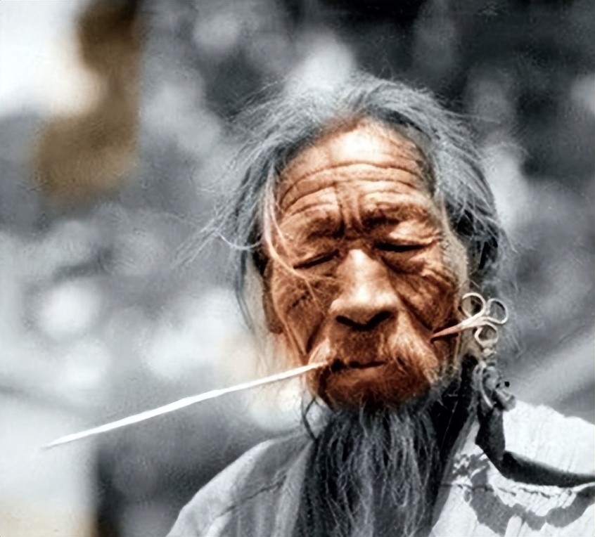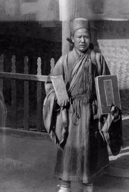 5.清末民初山上修行的道士,画面中他还拿着一个拂尘。
