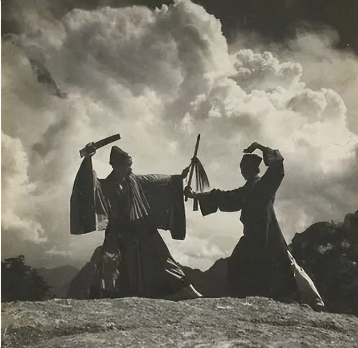 6.这张厉害,这是华山论剑老照片,一个手持宝剑,一个手持拂尘,只能说有这件事,但是没有小说家写的那么传奇罢了,一些行业内部定期举办的交流会而已,不是擂台赛。