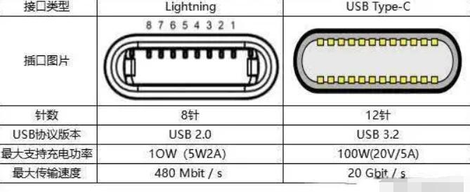 2. 传输协议:雷电接口采用苹果独有的协议,不支持USB协议;Type-C接口采用USB3.1协议,支持USB2.0、USB3.0、USB3.1等USB协议。