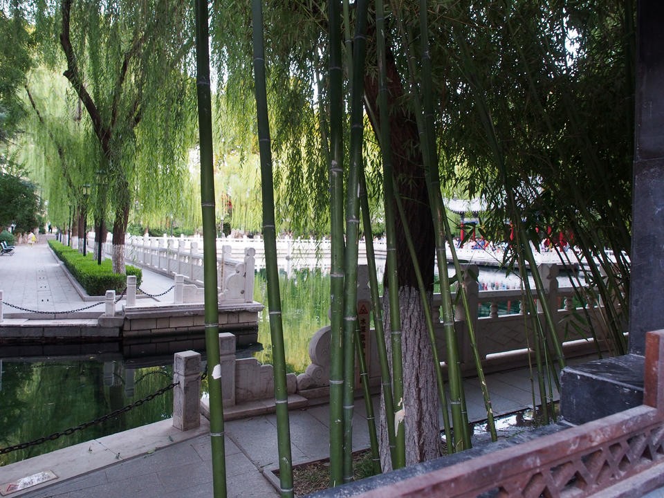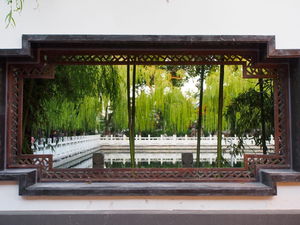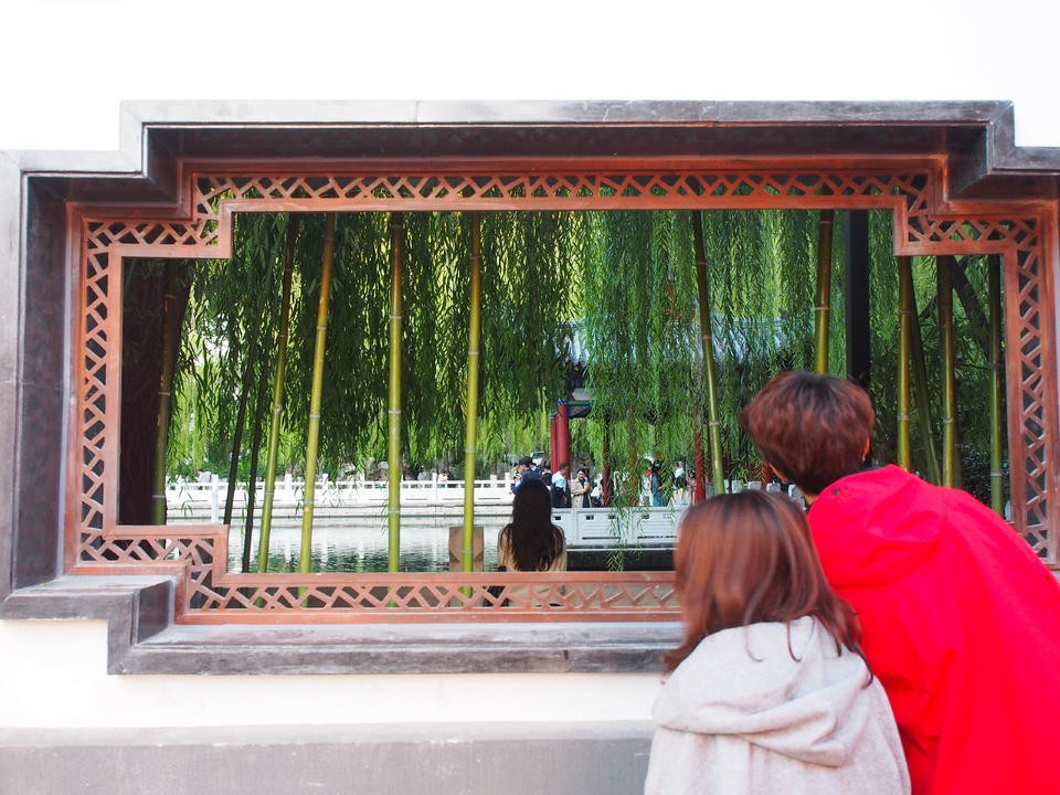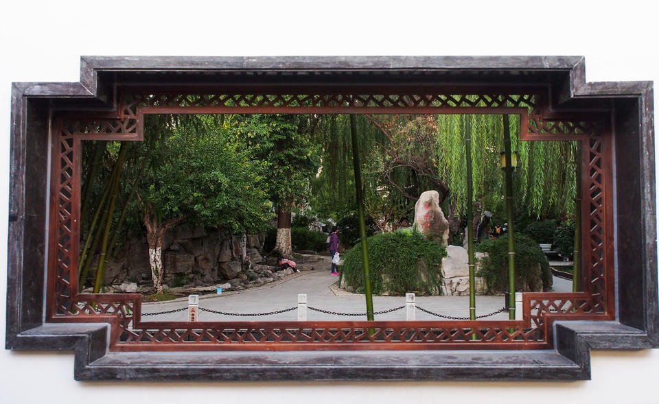 济南西更道上珍珠泉景区开窗透景,每一个窗口都是迷人的画卷