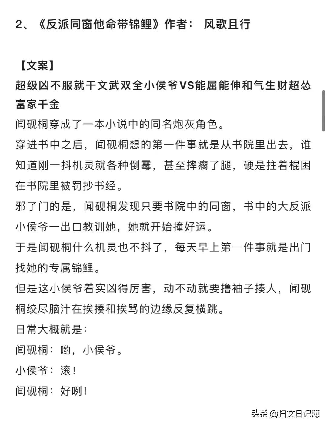 2、《反派同窗他命带锦鲤》作者: 风歌且行