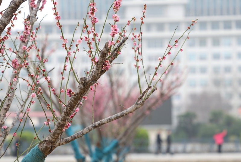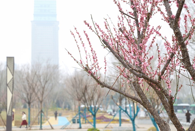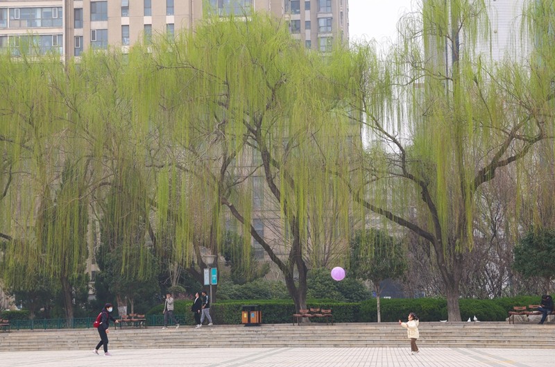 3月13日,绿城广场内呈现出一派生机勃勃的春日景象。柳树抽出嫩绿的新芽,细长的柳枝随风轻舞。红梅花娇艳似火,白梅花洁白如雪,它们相互映衬,在枝头争奇斗艳,散发着淡淡的清香。市民漫步在广场小道,欣赏着周围的美景。