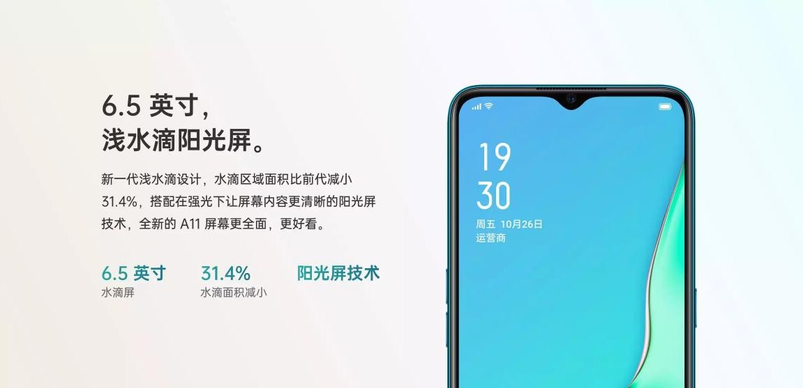 首先是外观方面,OPPO A11的正面采用一块6.5英寸的浅水滴阳光屏,相比于市面上其他的水滴屏,OPPO A11水滴所占区域面积更小,视觉影响更小,搭配全新的阳光屏技术,视觉效果非常出色。OPPO A11背面采用的是3D四曲面凝光机身,搭配流云白、湖光绿和暮辰紫三种独特的配色,不仅有着更加舒适温和的手感,颜值方面也更加潮流个性,还是非常符合当下“看脸”的年轻人口味的。