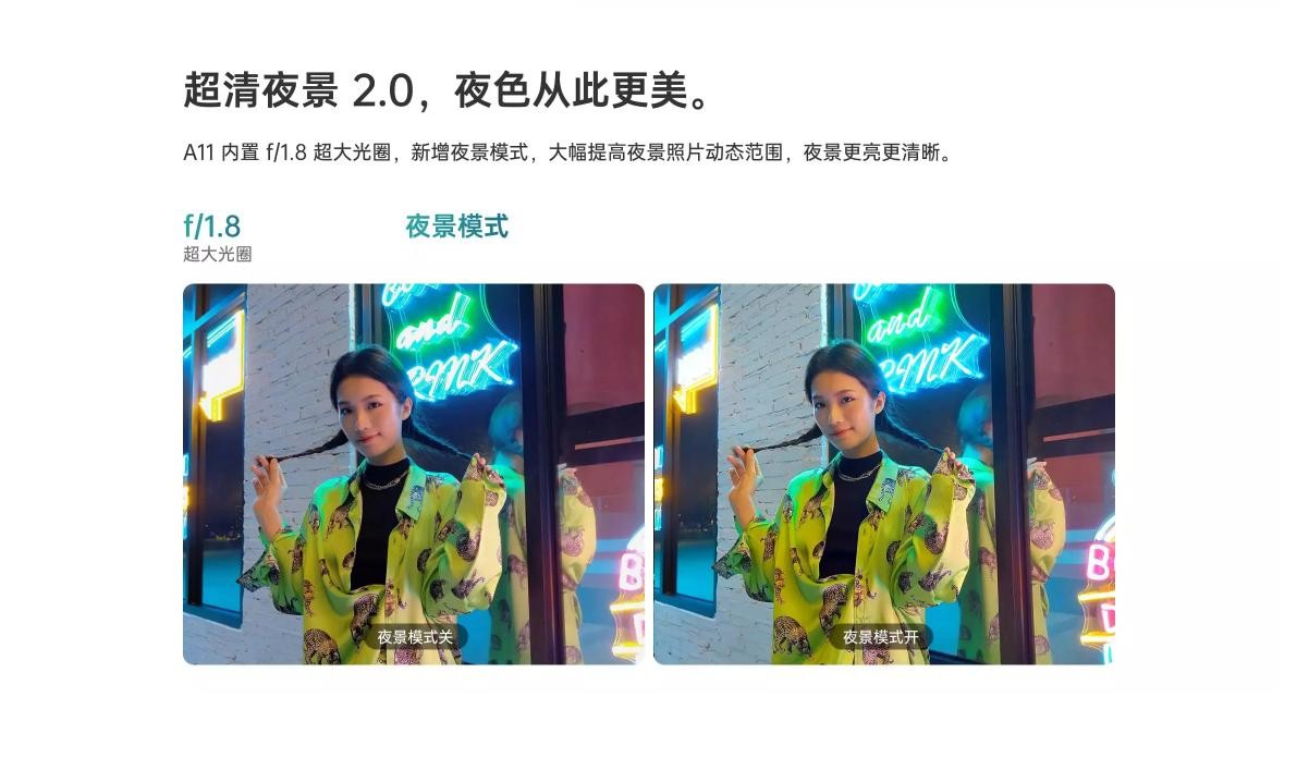 影像拍照一直以来都是OPPO的强项,此次OPPO A11也不例外,OPPO A11后置摄像头采用时下主流的1200万像素四摄方案,各种不同功能的镜头组合搭配内置的超级夜景2.0,人像风格等等模式,不仅在普通场景下有着出色的成像,在超广角、夜景、人像拍摄等场景下也能拍摄出令人满意的照片。