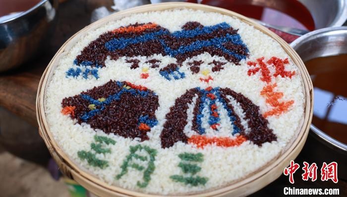 临近农历“三月三”,广西柳州市柳城县大埔镇靖西村“80后”姑娘梁丝珍专注于制作纯手工五色糯米饭订单。从采集植物、制作染料,到浸泡糯米、蒸制米饭,每一个环节她都亲力亲为,还将糯米饭变换出各种花样,制作成漂亮的民俗糯米饭画。壮家人把五色糯米饭视作吉祥如意、五谷丰登的象征,其制作技艺延传至今已有1000余年历史。每年农历“三月三”或清明时节,广西民众普遍会制作五色糯米饭。图为五色糯米饭。汤晓逵 摄