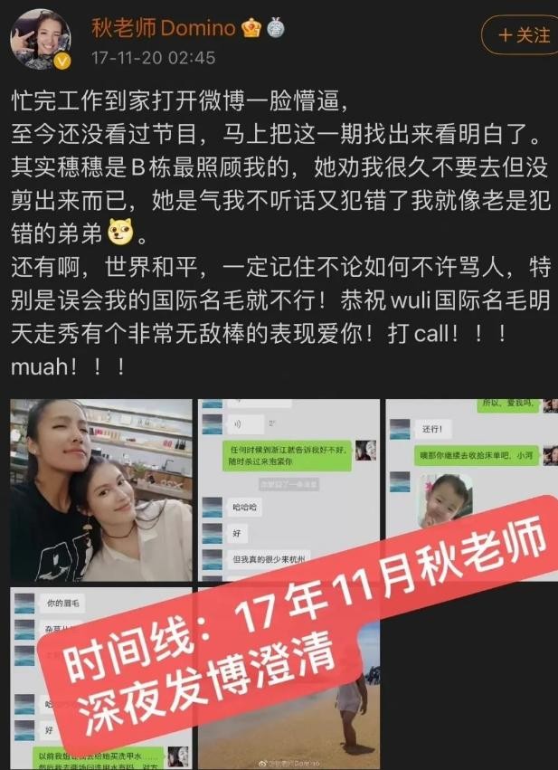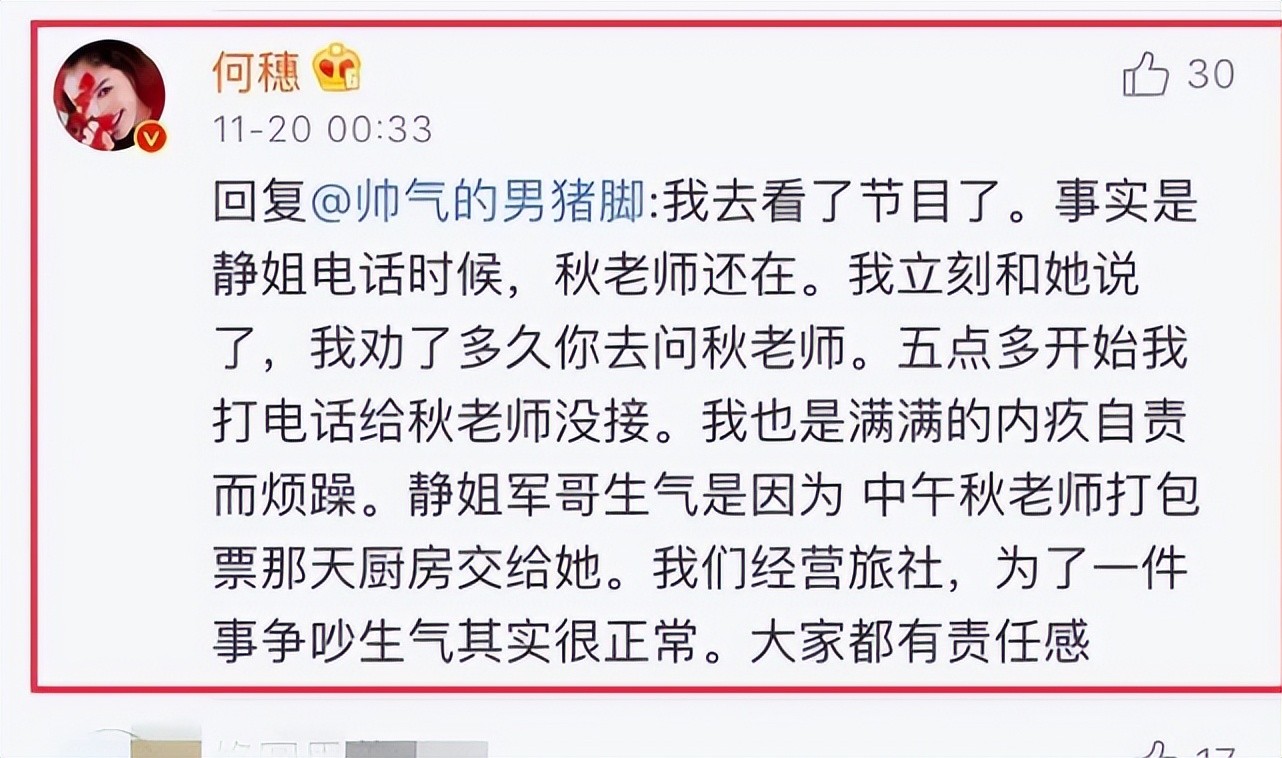 还有就是在何穗参与录制的《青春旅社》综艺中,被指冷暴力素人嘉宾。对此,何穗本人虽然有发文解释,而被指遭何穗冷暴力的秋老师也有晒两个人合照帮其澄清,不过,网友们似乎并不买账。