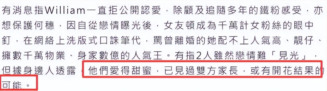 其实,从恋情曝光到现在,对于何穗与陈伟霆这段恋情,陈伟霆粉丝似乎并不认可女方,毕竟在陈伟霆之前,何穗曾有过一段闪婚闪离的感情,对于何穗的那段婚姻,有传言称何穗发现对方是假富豪才果断离婚。