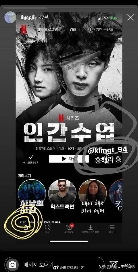 起因是有人发现,女演员金智仁发了个INS,结果暴露了一个网飞账号,有罗渽民的名字。