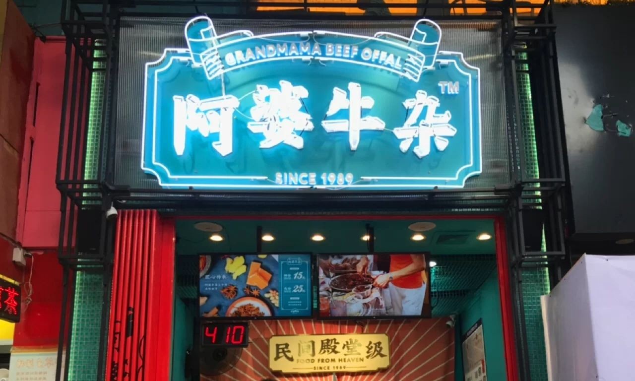 说起阿婆牛杂,人们的印象大多是芳村推着小车的一位年迈老婆婆,小小的一份牛杂承载着的是无数人的美好回忆,每份牛杂都内含牛膀、牛肺、牛肚、牛肠、牛脆骨、牛筋、面筋、白萝卜等,满满一大碗都是真材实料,据说阿婆的秘方是用红糖和花生酱熬的汁底,所以味道会偏甜,所以大家可以根据自己的喜好加入蒜蓉辣椒酱者或秘制香辣酱中和其中的甜味。