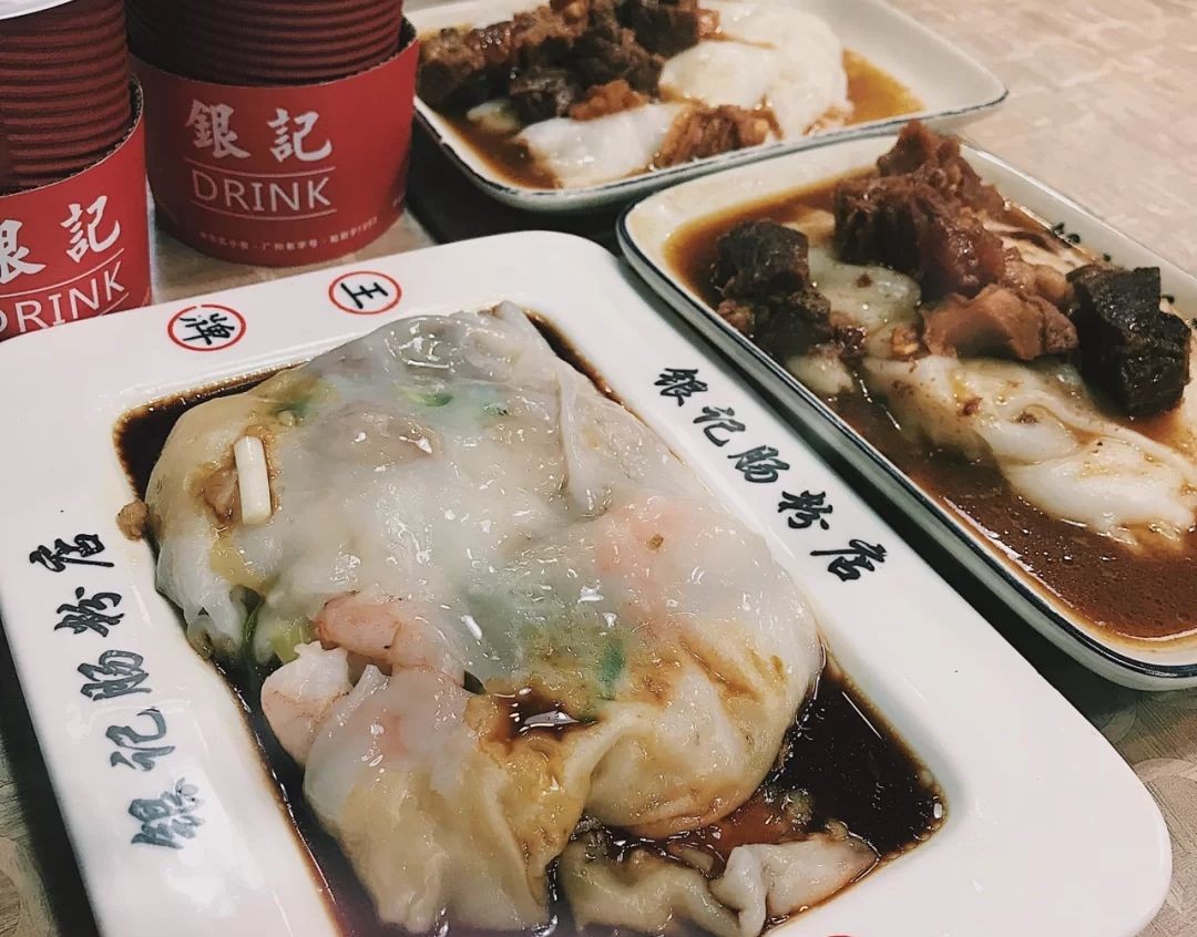 这是一家连锁品牌店,北京路的这一家经营了很多年,算是比较出名的老字号了。肠粉的奥义在于粉皮够薄,口感滑溜,银记的招牌三宝肠粉是一绝,肠粉外皮薄嫩,弹性极佳,沾秘制酱汁,肠粉荤素搭配,中间的猪肉分量十足,鲜嫩滑口,肠粉种类丰富,可根据个人口味选择。