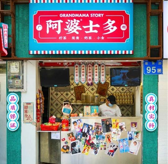 阿婆士多是一家复古风奶茶店,丝袜奶茶、港式柠檬茶是店里最火的两款奶茶。丝袜奶茶是标准的广式风味,茶香奶香完美融合,甜而不腻,丝滑顺口,茶清奶香特别有“秋天的第一杯奶茶”的内味;港式柠檬茶酸中带甜,柠檬的酸配合茶的苦涩,还有微微的甜,味道刚刚好,口齿留香,回甘持久。