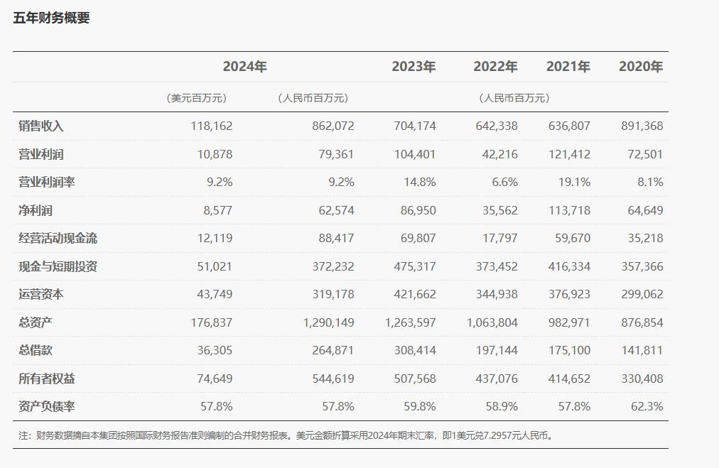 从具体数据看,华为2024年营收8621亿,比2023年7041亿增长了一千多亿、营业利润793亿比2023年的1044亿少了200多亿、营业利润率9.2%,相比之下小米是20%,主要是华为研发投入太大,每年研发支出几乎是后面10名的总和,净利润626亿,比上一年的869亿也少了200多亿,同样是研发投入增加的缘故。现金流方面华为剩余884亿,此外还有短期投资与现金4753亿,总资产1.29万亿,比2023年略微增加,负债率57.8%,可以说是很健康的财报了。