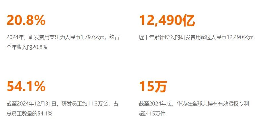 刚刚华为发布了2024年的年报,整个年报的数据还是很亮眼的,去年华为全年营收8621亿,利润626亿,这还是在全年研发投入1797亿的情况下达到的,这里就占营收的20.8%了,如果减少一半的投入盈利都会翻倍。