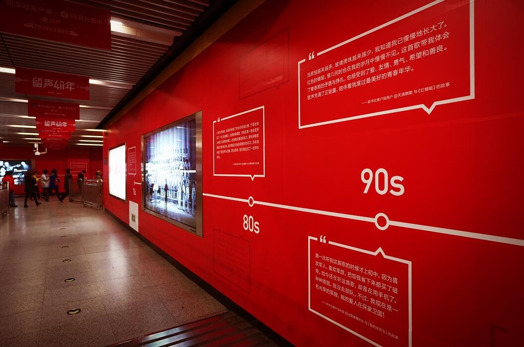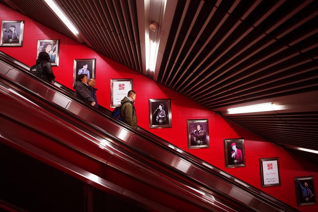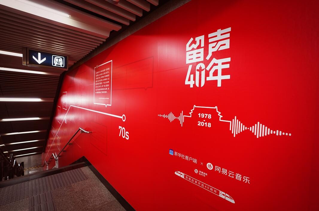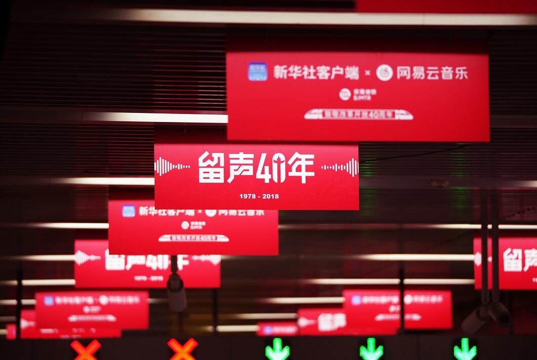 在庆祝改革开放40周年之际,12月3日,新华社客户端在北京地铁4号线宣武门站和杭州地铁1号线定安路站,举办主题为“留声40年:那些改变你我的故事”音乐主题影像展。40年来关于音乐的图片在地铁宣武门站展出,吸引了不少乘客驻足观看、拍照。