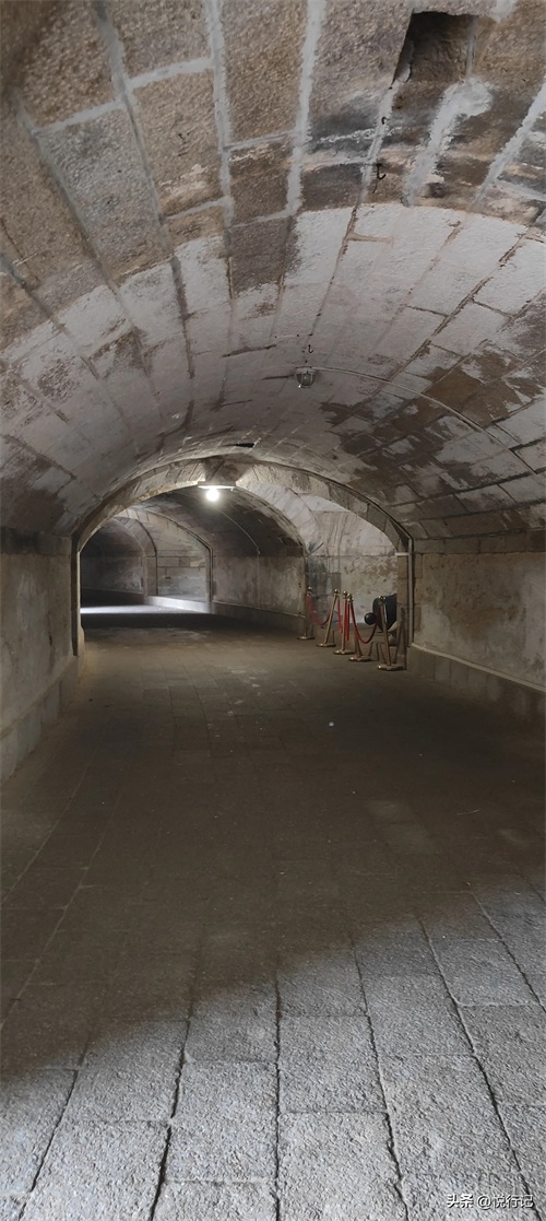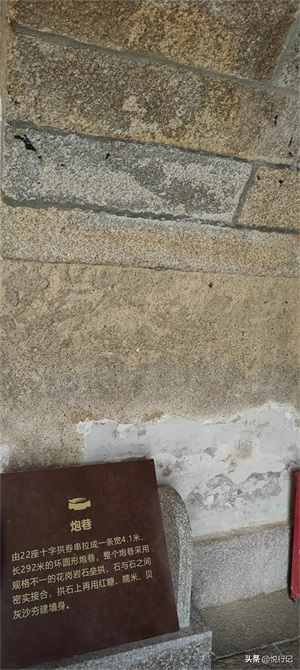 炮台底层坑道与十字交叉拱窟窿全部用非风化花岗岩规格石砌筑,台面跑道固若平地,垛口炮位均铺上花岗岩石条,石缝严密,砌筑坚固。