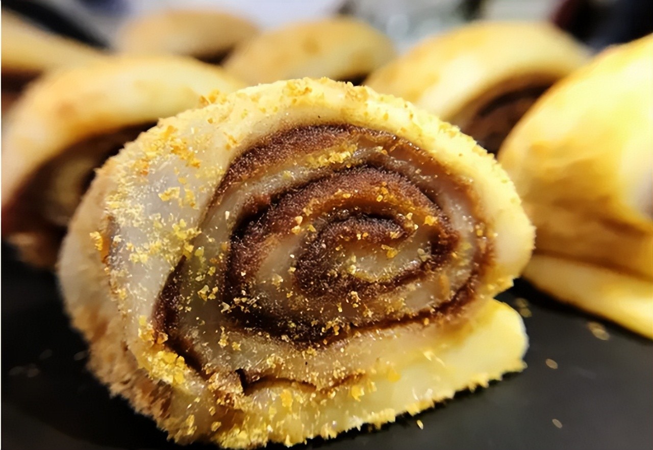 承德驴打滚是河北承德的一道特色小吃,其实就是用黄米为主要食材做成的豆面糕,做好的驴打滚看着层次分明,外表呈金黄色,入口绵软,甜甜糯糯的,豆香馅甜,别有风味。
