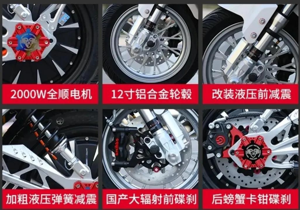 在动力方面,这款车型搭载了全顺的12寸电机,型号为2000瓦,这种电机在电动车当中是属于大号的了。再加上它的磁钢高达到了40,可以攀爬60度的斜坡,不过这种电机是非常耗电的,车主需要准备大号的电池,一般的电池都带不起来。
