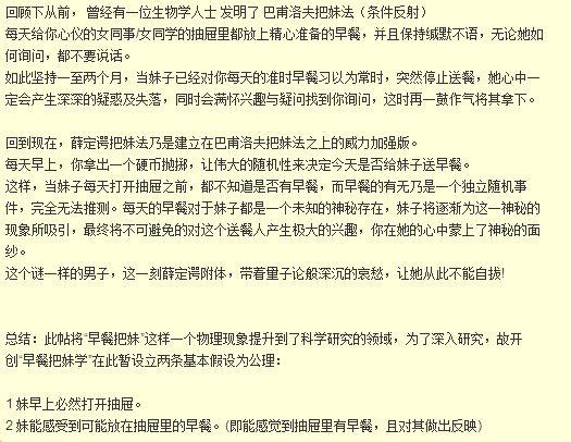 如此以往操作下去(基本上也比较省早餐钱),总之是要比巴甫洛夫来得高效一点。