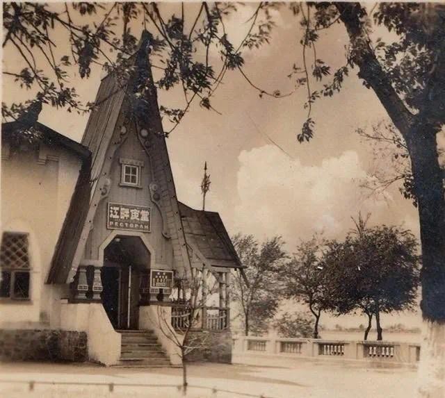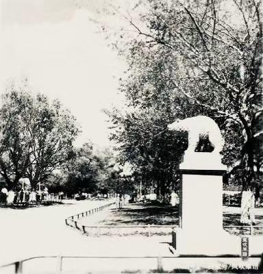 公园餐厅两侧的雕像,著名的“白熊”雕像位于其西侧,雕像于1938年扩建江畔公园时所立,早已无存。