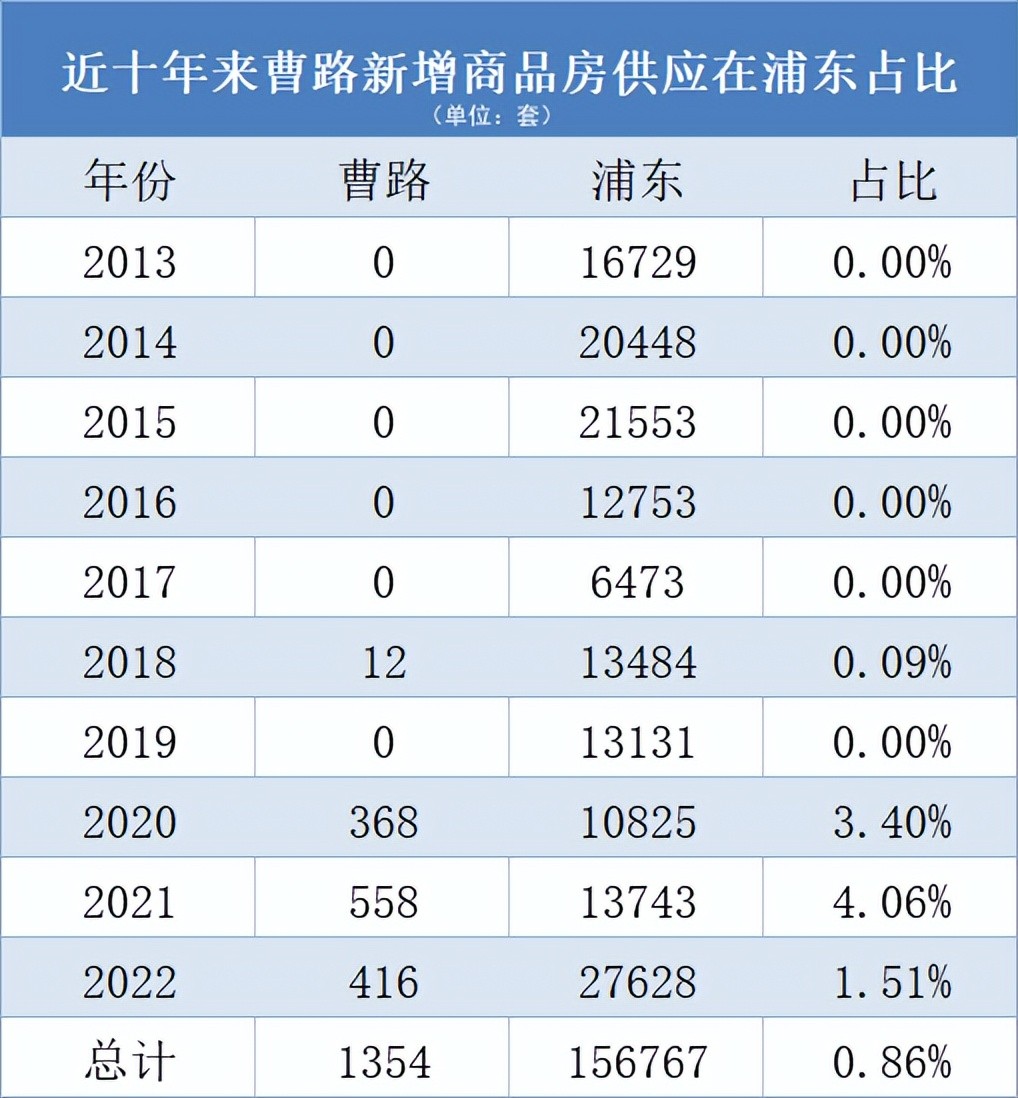 而曹路,不仅供应量远远落后,甚至价格方面,在自带溢价的浦东,也不占优势。